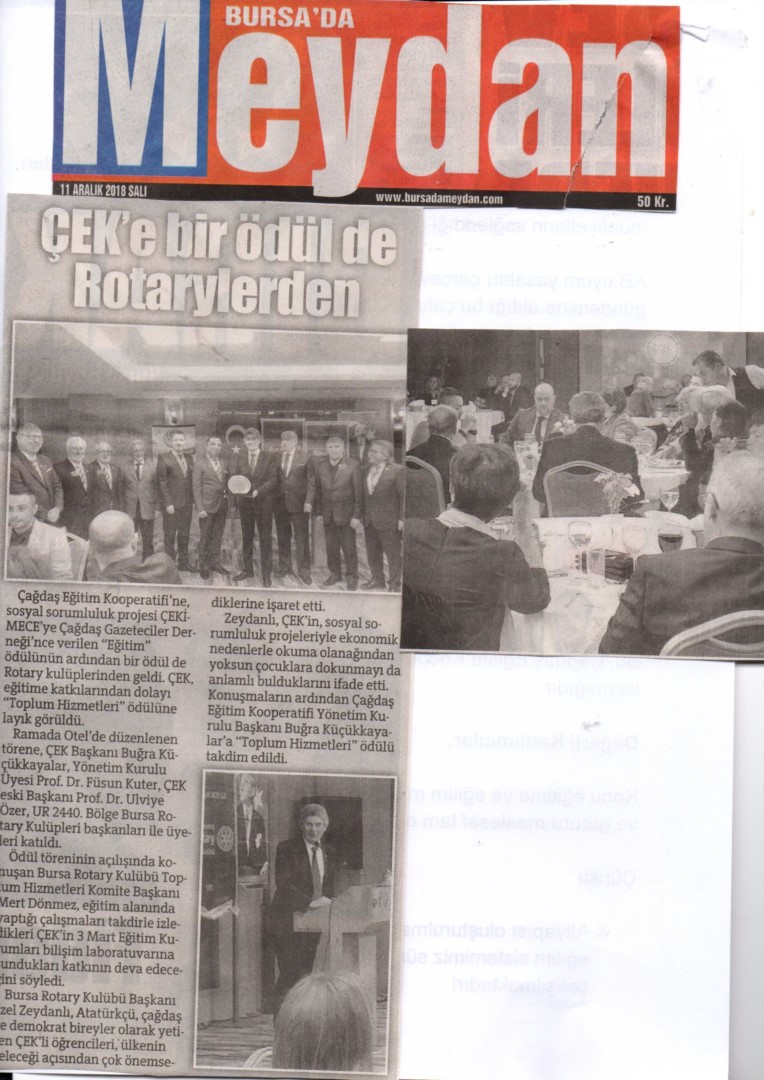 • ÇEK'E BİR ÖDÜL DE ROTARYLERDEN
