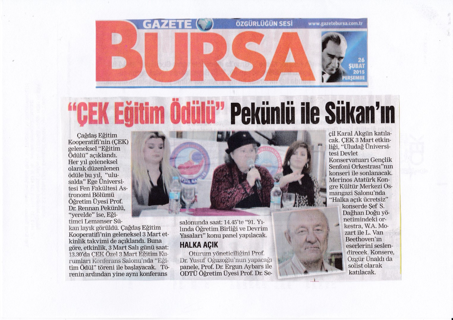 ÇEK EĞİTİM ÖDÜLÜ PEKÜNLÜ İLE SÜKAN'IN
