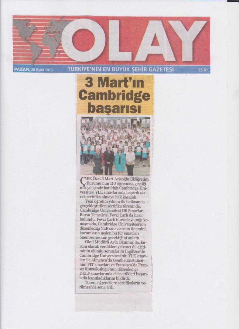 OLAY GAZETESI "3 MART'IN CAMBRIDGE BASARISI"