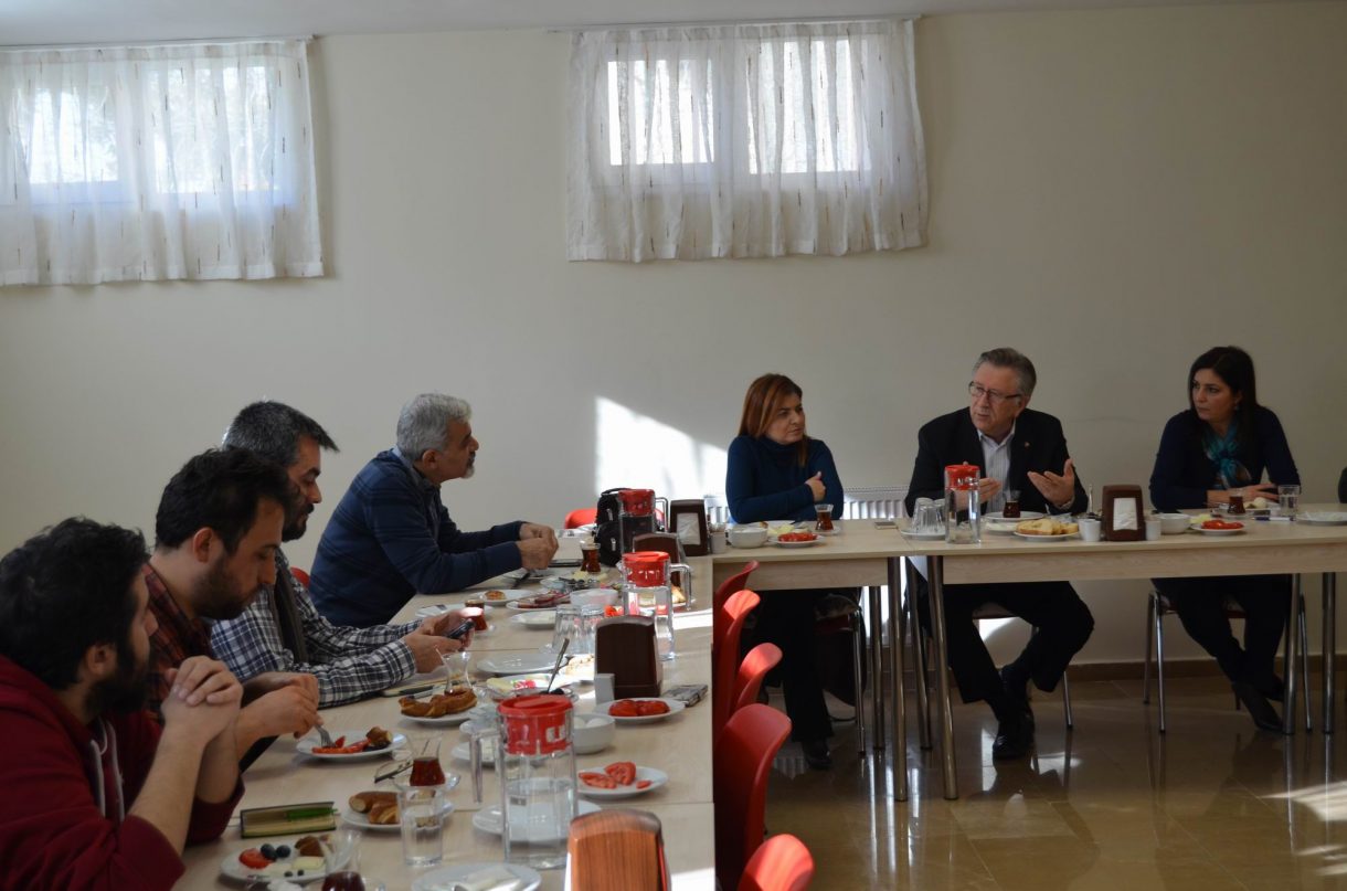 Bir grup gazetecinin katılımıyla Çağdaş Eğitim Kooperatifi'nin Ertuğrul'daki yönetim merkezinde bir araya gelen Başkan Arabacı ve ÇEK yöneticileri, kurumun çalışmaları hakkında bilgiler verdiler.
